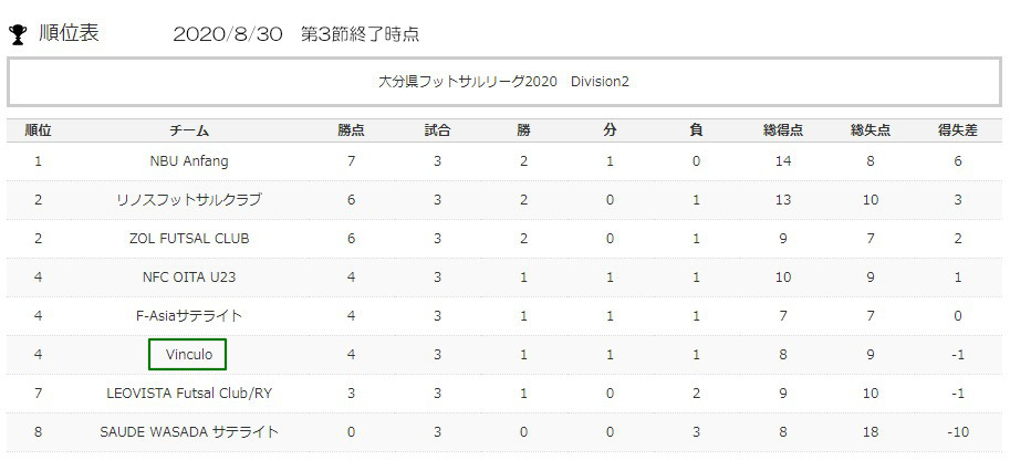 大分県フットサルリーグも3節終了時点で混戦となってきました